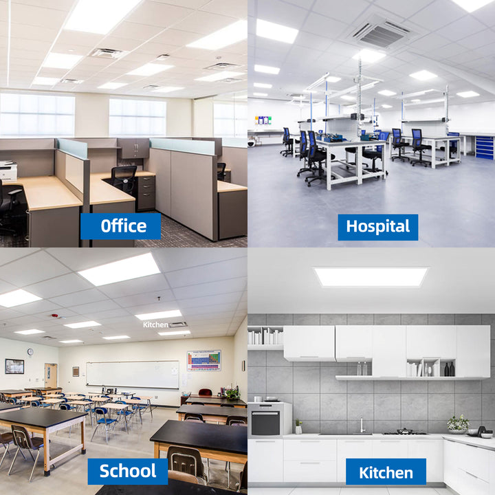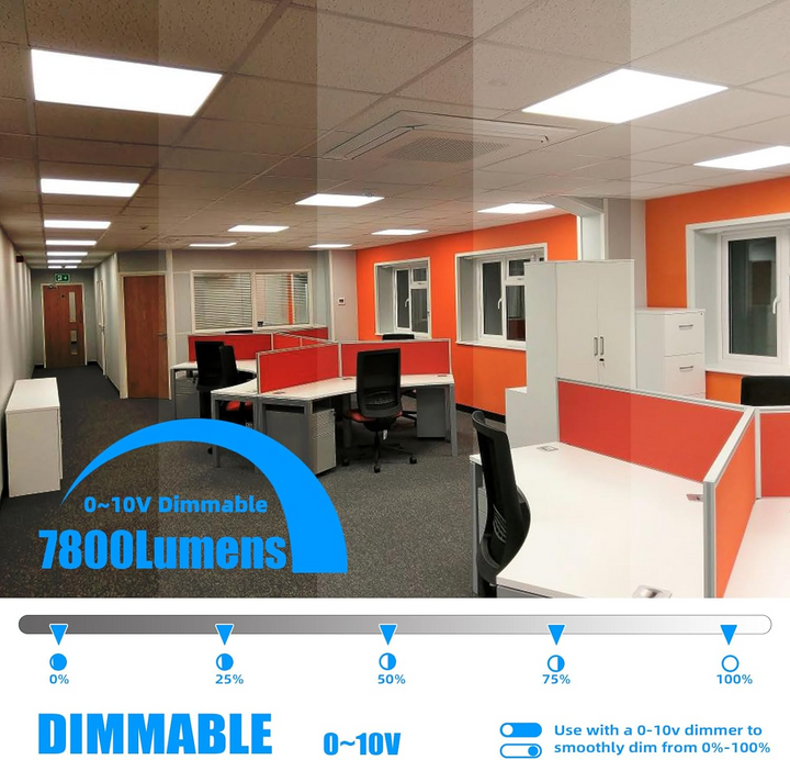 - 0-10V Dimmable: Drop ceiling office lights is compatible with most dimmers, perfect compatibility. Allowing smooth dimming between 100% and 10%. Smooth PMMA cover with uniformity perfect light distribution, experience optimal visual comfort with flicker-free technology, provides soft, comfortable brightness, prioritizing eye care. With a rated lifespan of 50,000 hours, which eliminates bulb replacement, buzzing, and wasted energy consumption.