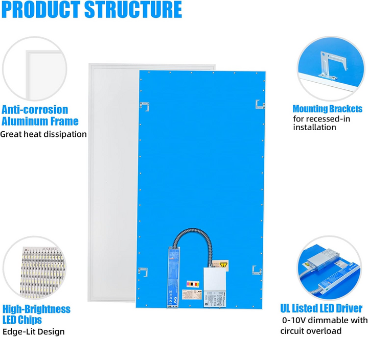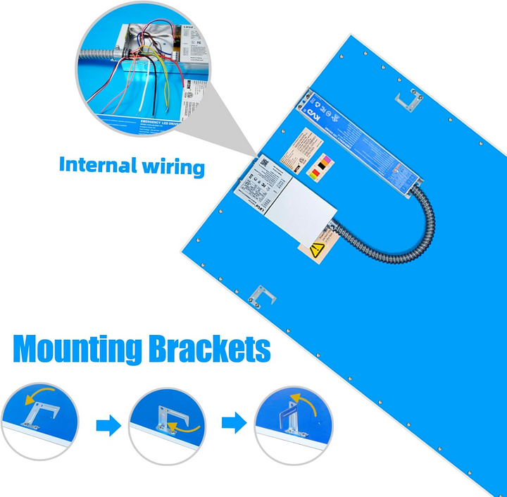 - High Quality: 2X4 edge-Lit emergency panel lights lines are evenly distributed and soft. No flicker, no noise. Experience outstanding illumination with high-performance features, powered by energy-efficient LED chips and UL LED driver. Ideal for homes, hospitals, schools, shops, supermarket, office, hospitality, retail or any place requiring emergency led panel lights.