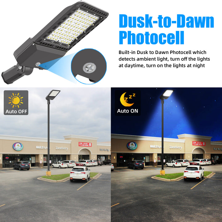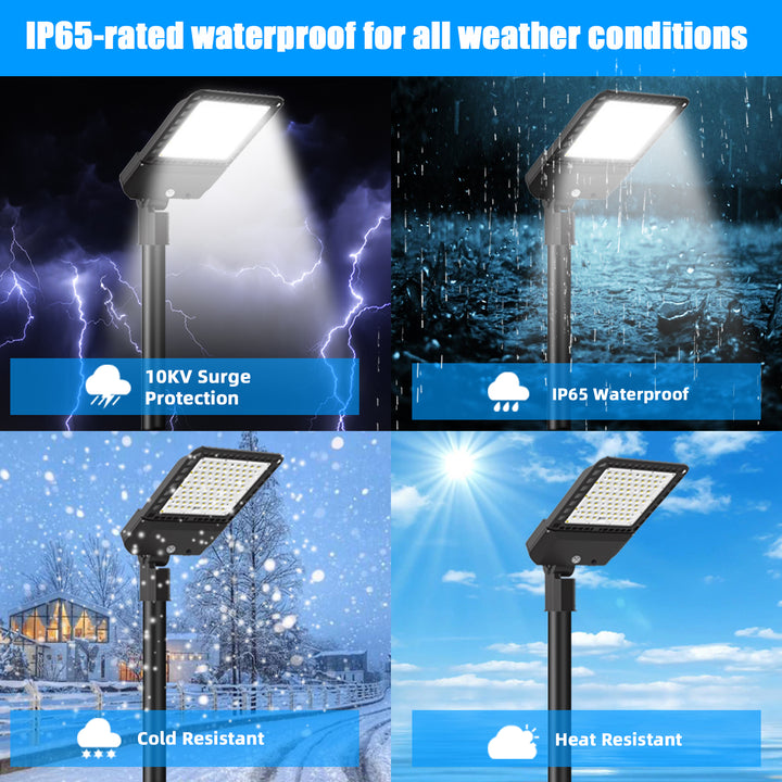 - ✔Rugged and Durable - commercial outdoor lighting built with a durable die-cast aluminum housing and hollow design for enhanced airflow and heat dissipation, this shoebox light extends chip life to over 50,000 hours. and IP65 waterproof rating, this lighting fixture withstands heavy rain, snow, and temperatures from -40°F to 140°F.